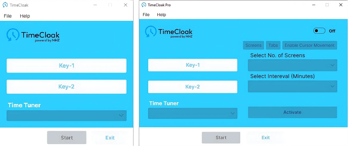 TimeCloak Pro offers additional features such as screen-switching, tab-switching technology and autmoted cursor manipulation. These tools create the illusion of active engagement even when you’re away from your computer, making it ideal for those who require more flexibility in their time tracking.
